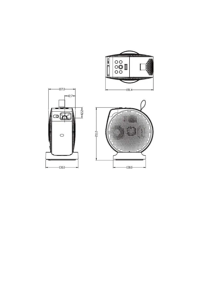 With Base: 130.0 (W) x 211.2 (H) x 191.4 (D) mm (5.12 x 8.31 x 7.54 in)