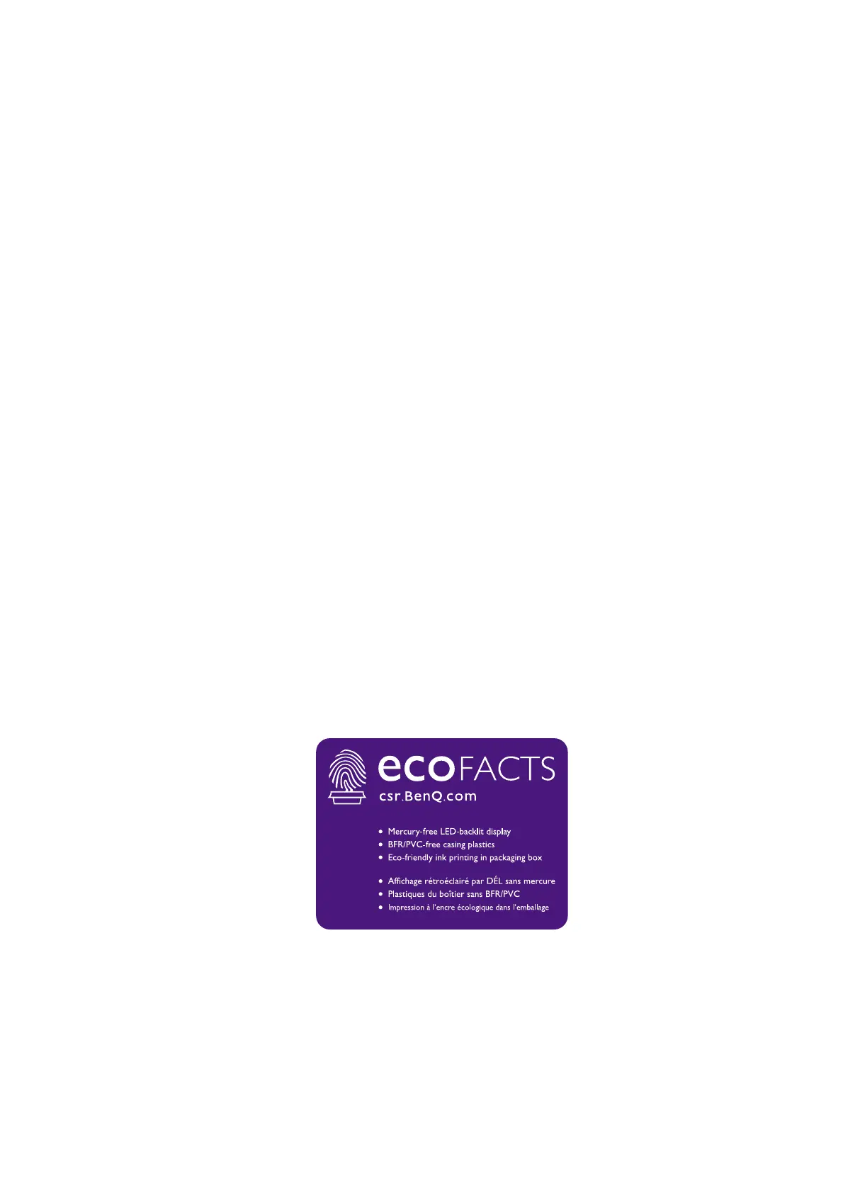 of the products. BenQ ecoFACTS label lists key eco-friendly design highlights of each