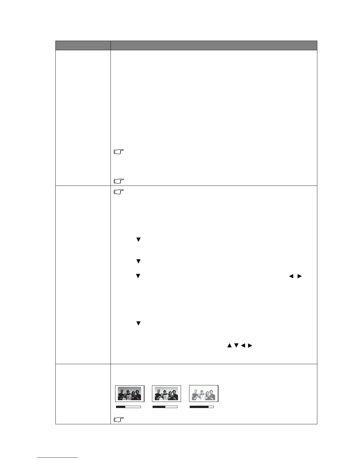 • Bright: Maximizes the brightness of the projected image. This mode is suitable