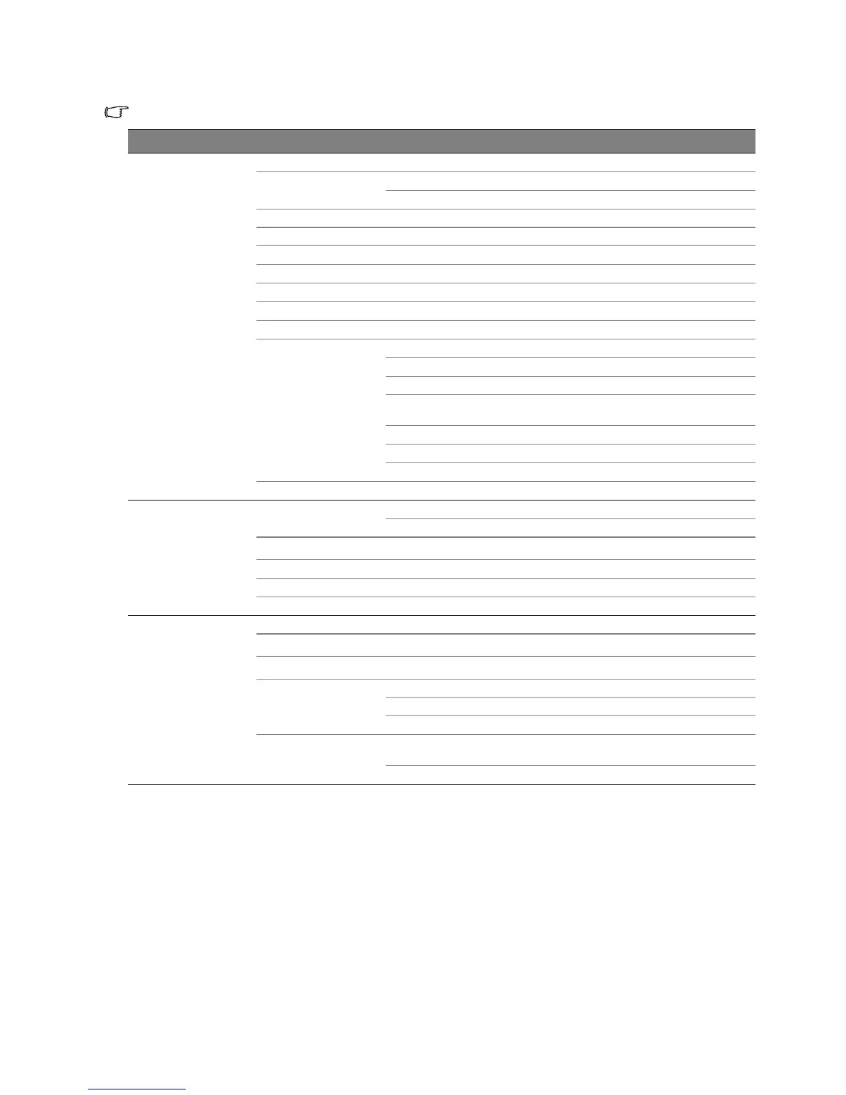 Main menu Submenu Options