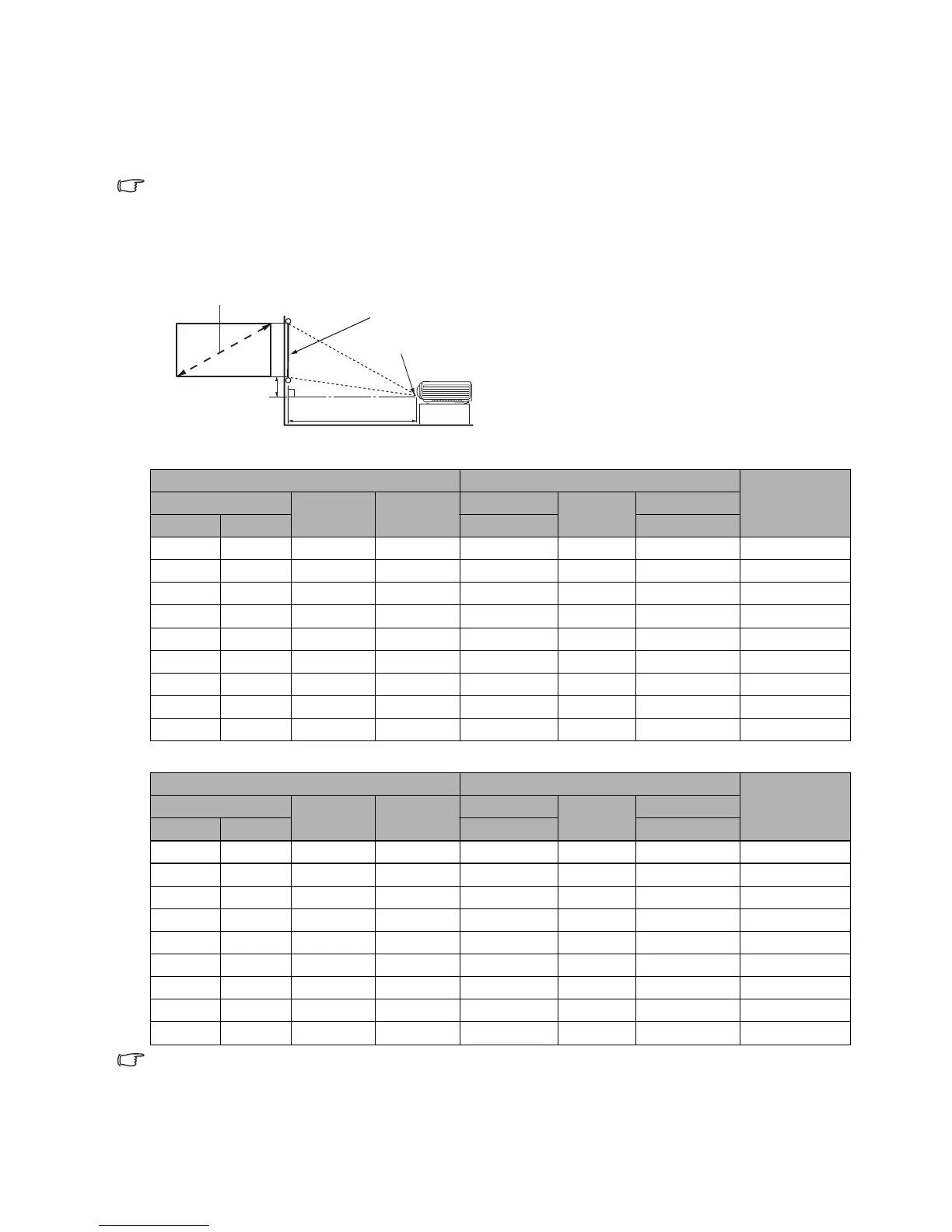 Use the illustration and tables below to help you determine the projection distance.