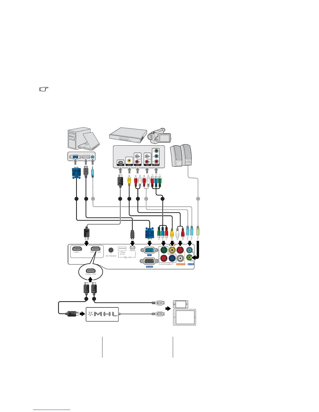 • The illustrations below are for reference only. The rear connecting jacks available on the projector vary
