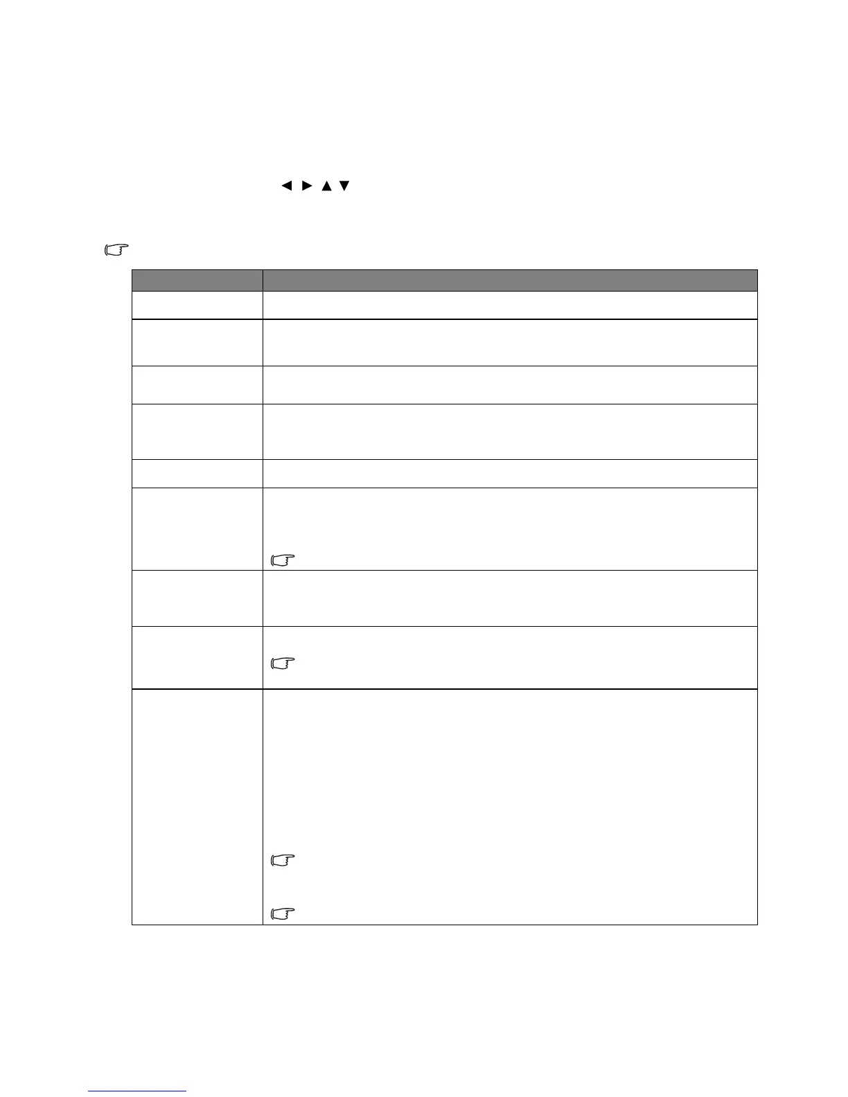 • Use the arrow keys ( / //) on the projector or remote control to move through the menu
