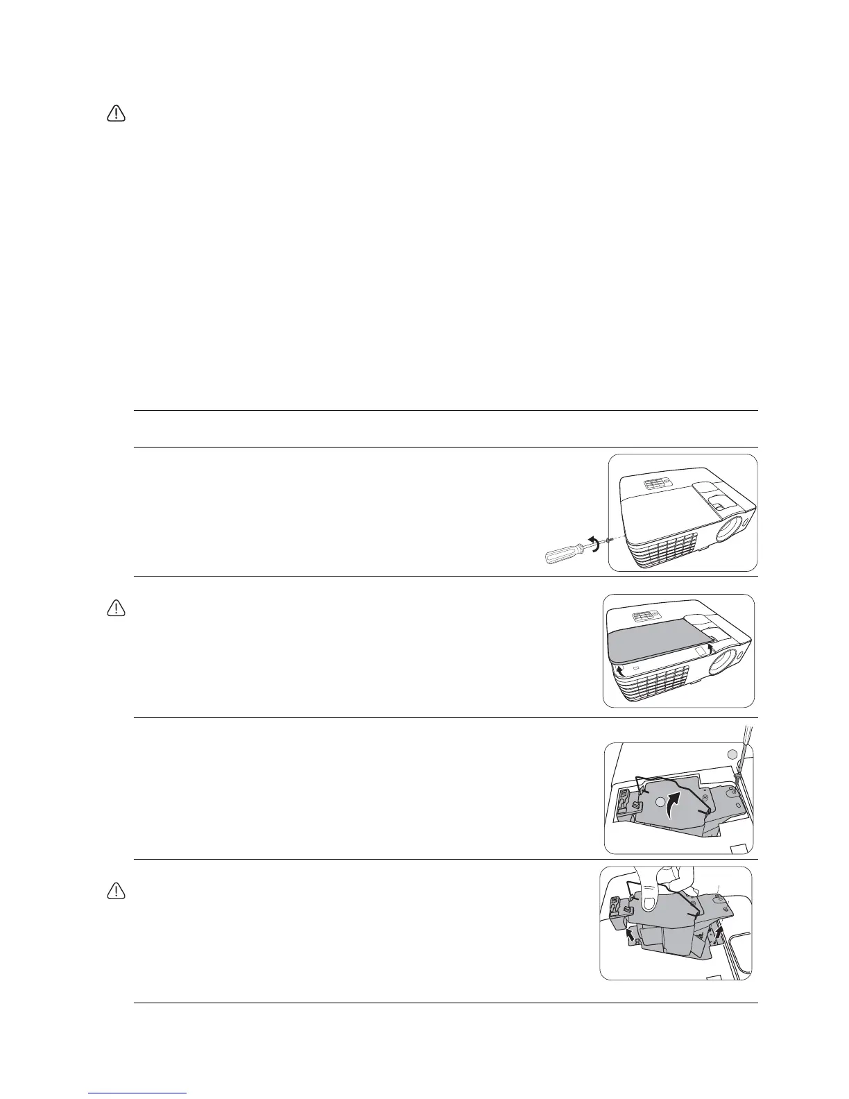 • To reduce the risk of severe burns, allow the projector to cool for at least 45 minutes before replacing the