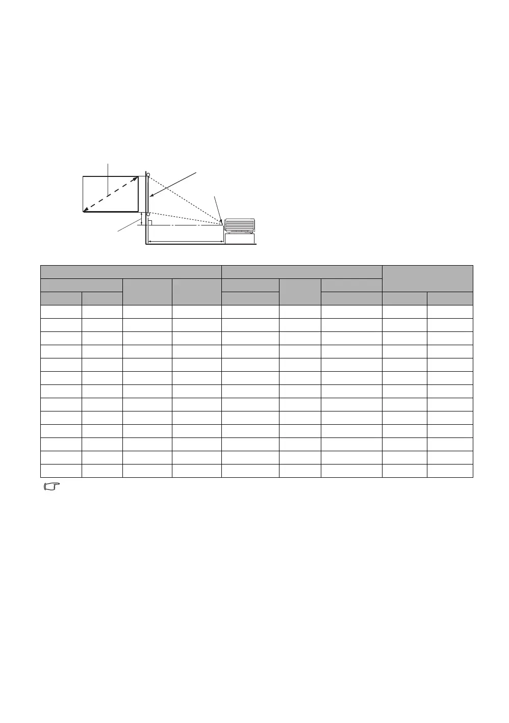 Use the illustration and the table below to help you determine the projection distance.