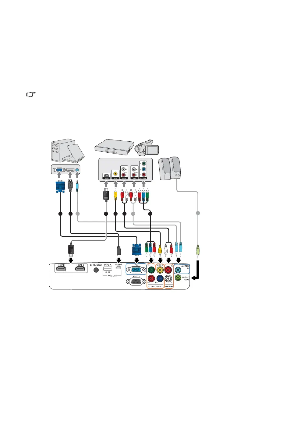The illustrations below are for reference only. The rear connecting jacks available on the projector vary