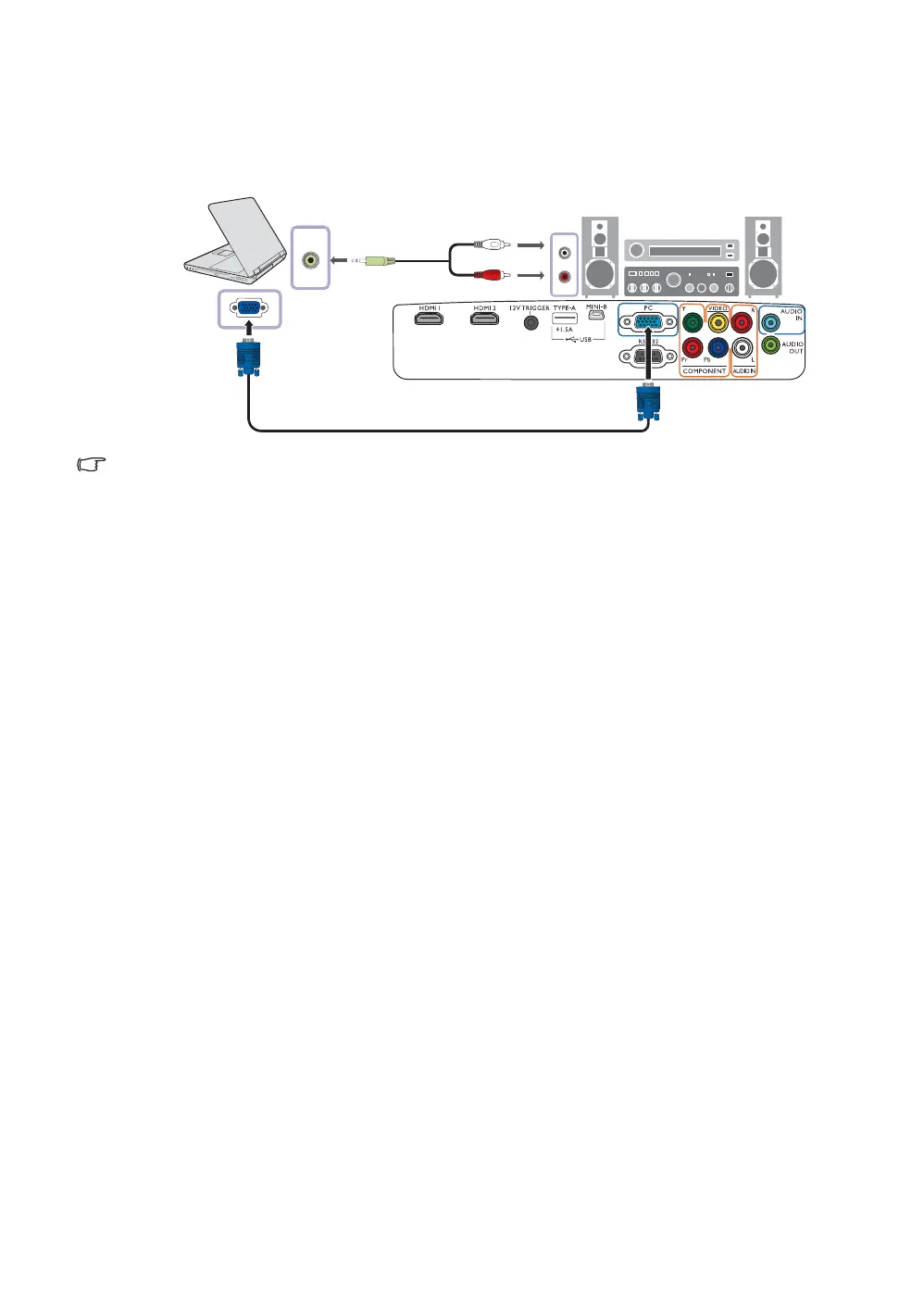 Connect the projector to a computer with a VGA cable. You should also connect the separate audio
