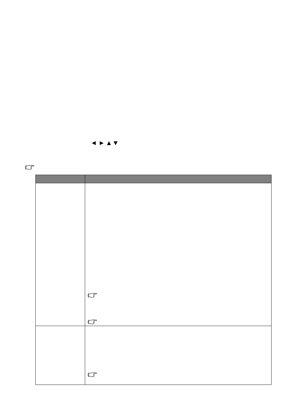 • Use the arrow keys ( ///) on the projector or remote control to move through the menu