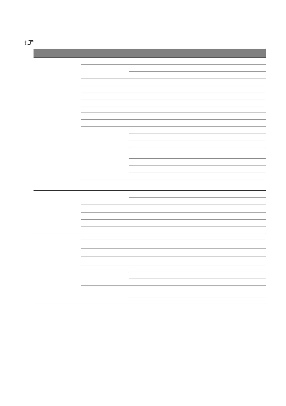 Main menu Submenu Options