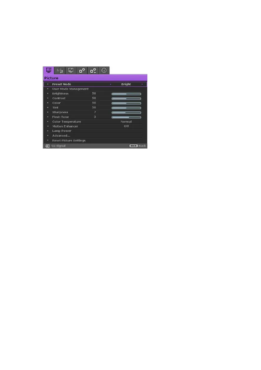 Next time when you turn on the projector, you may access the Basic OSD menu by