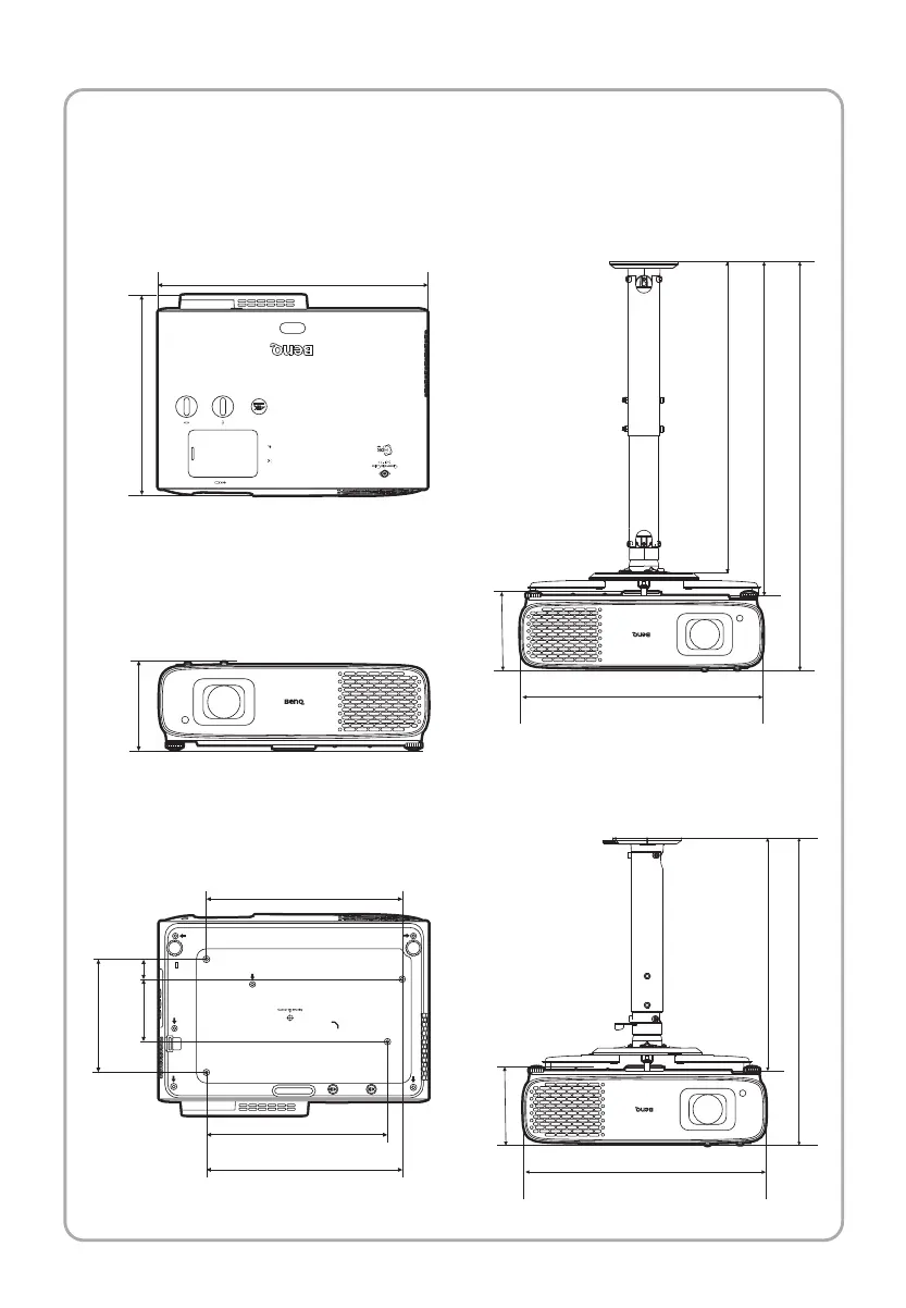 BenQ HT4550i - Ceiling Mount Installation Details; Mounting Dimensions and Screws