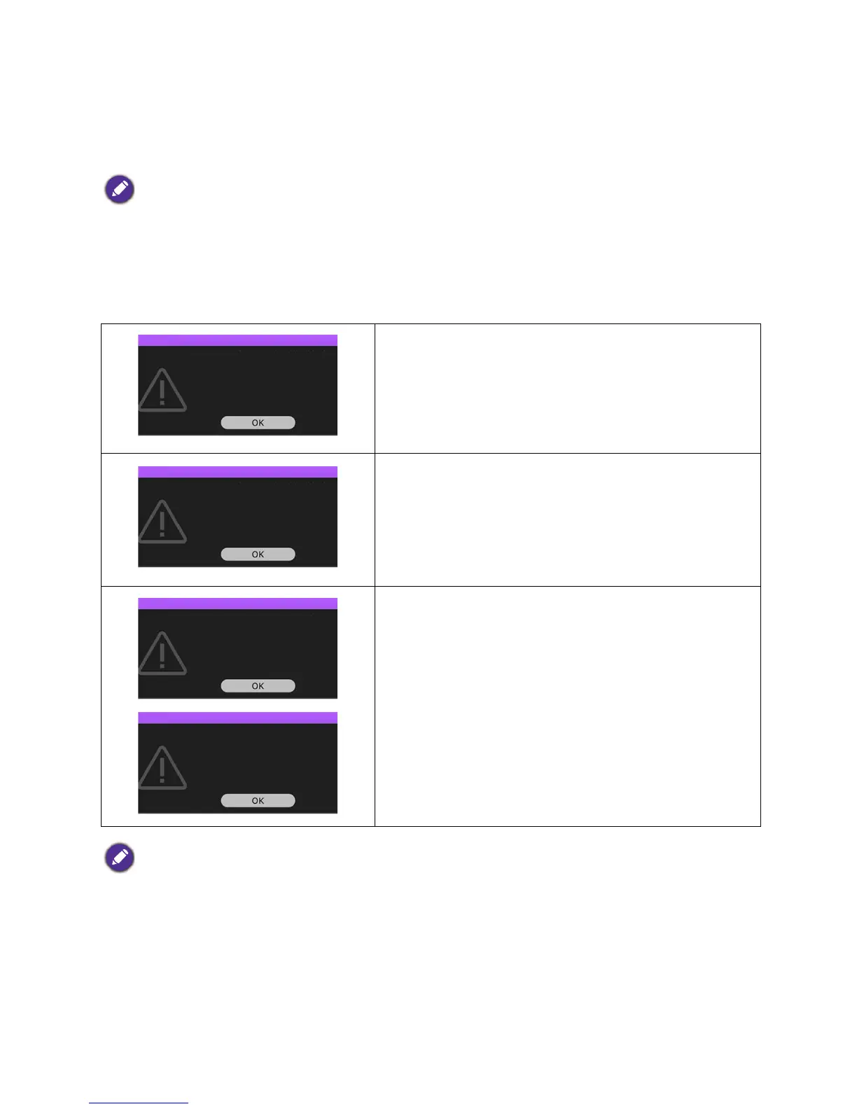 The following Lamp warning displays will remind you to change the lamp.