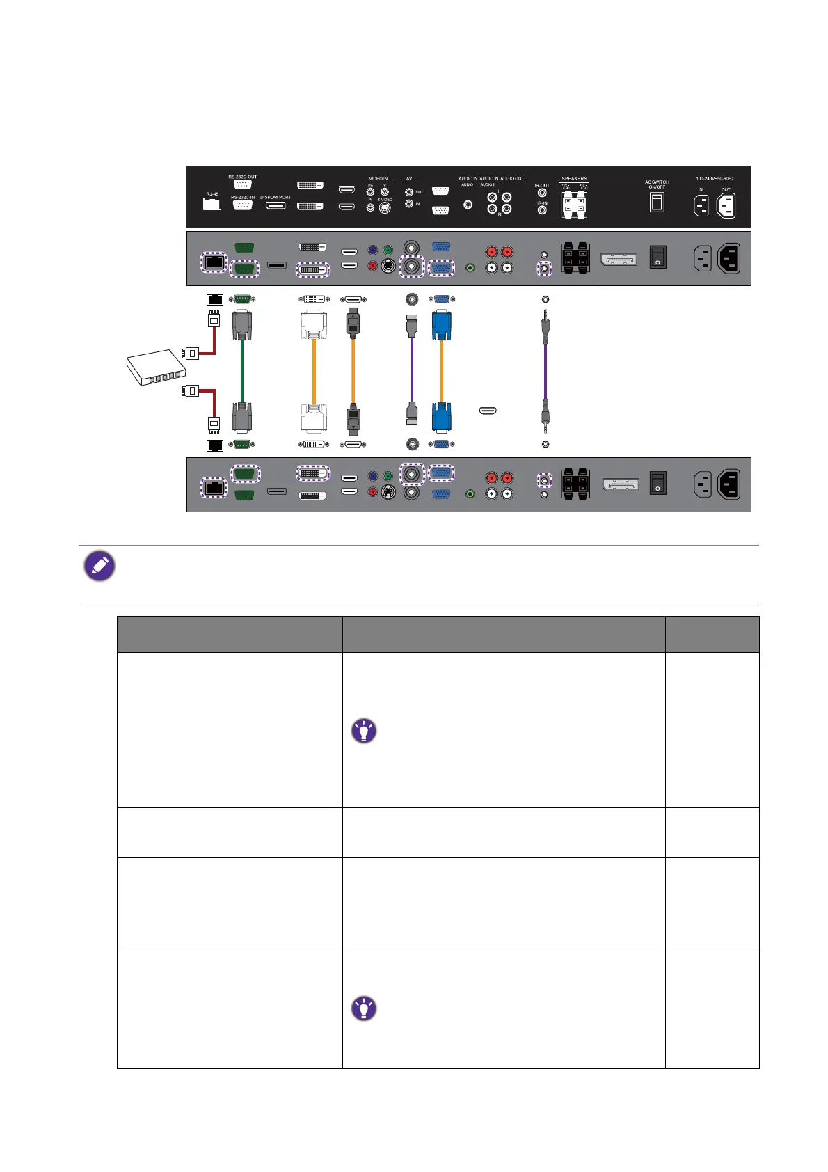 Depending on your needs and input source, different cables should be connected properly.