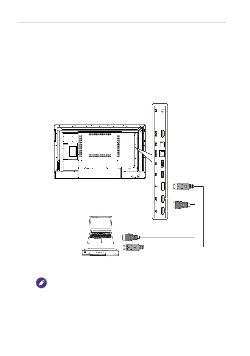 1. Connect the HDMI1 or HDMI2 jack on the display to the HDMI output jack on a