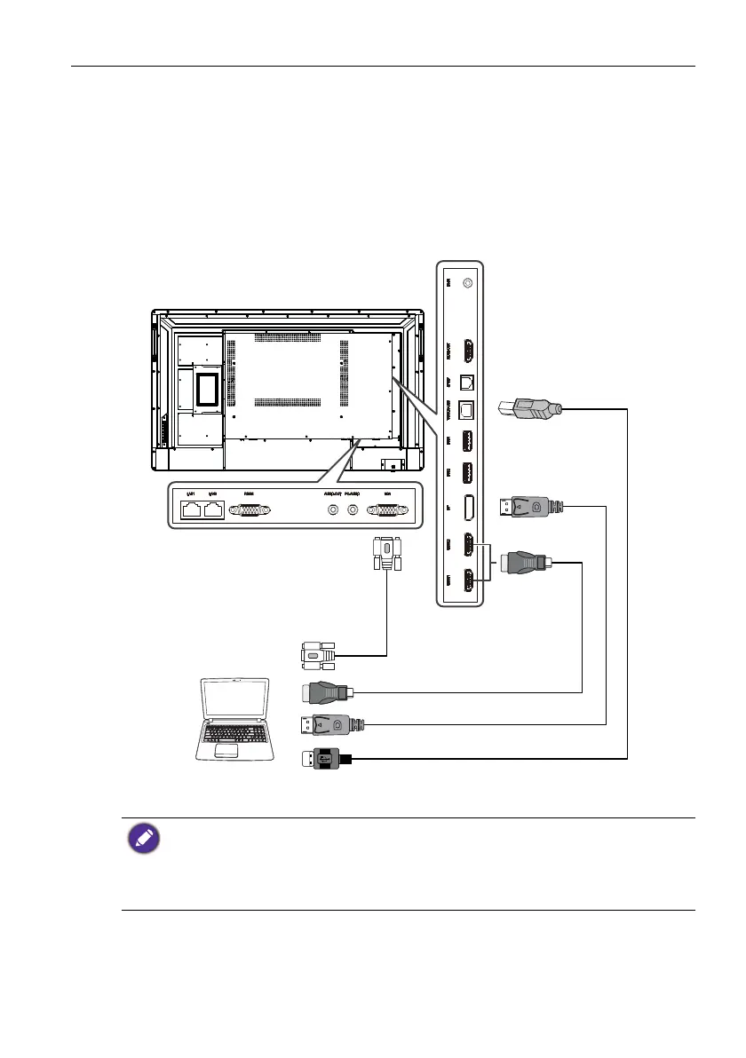• It is highly recommended that you connect the display to the PC or laptop directly. Avoid