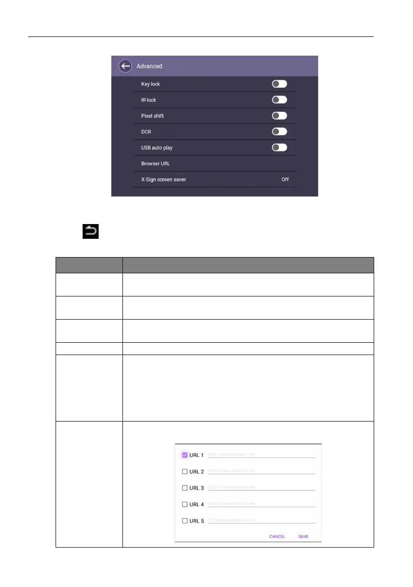 Browse URL Allows you to input a URL to show that website as digital signage