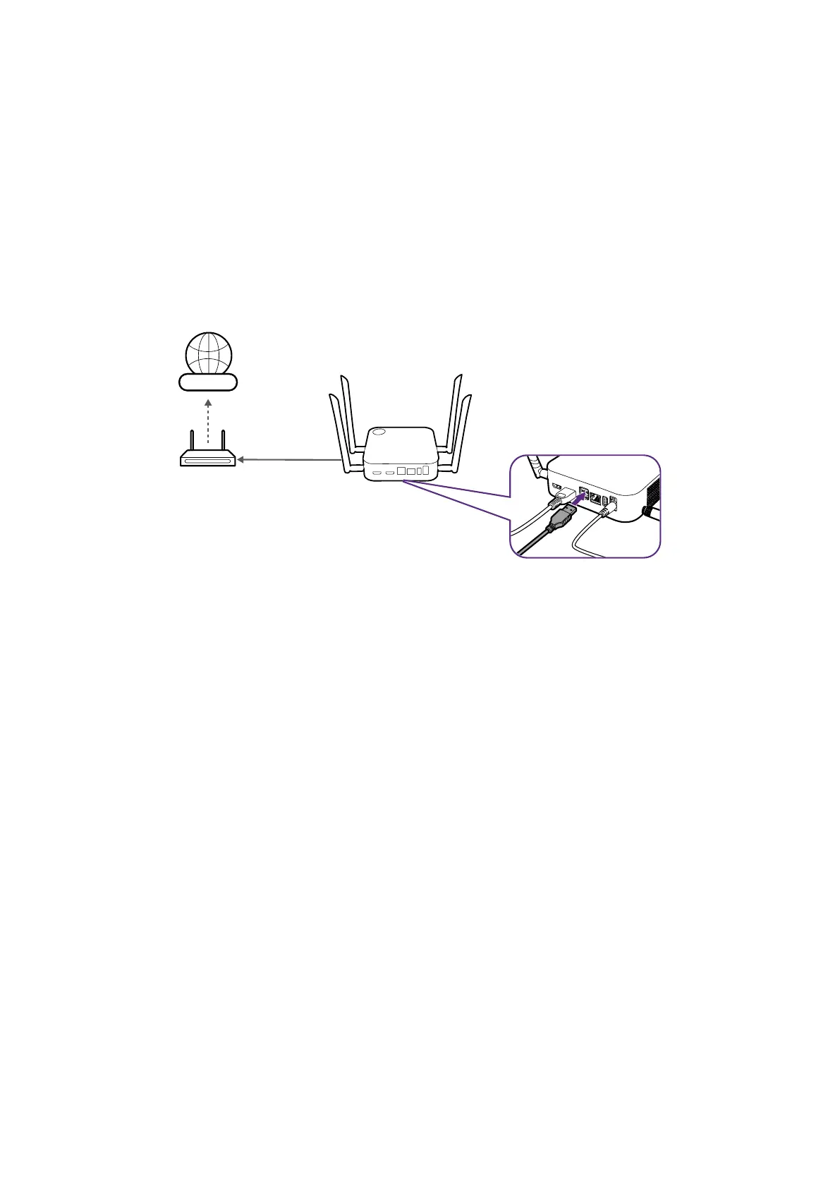 Insert a network cable with RJ-45 connectors into the WAN port and connect the other side