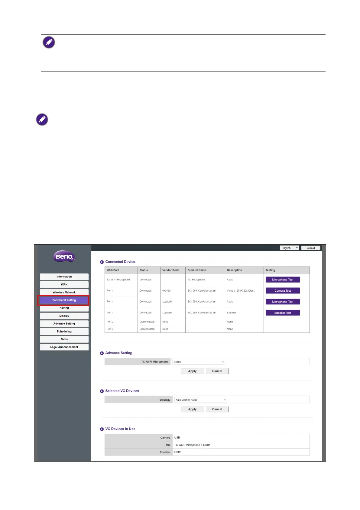 Click Peripheral Setting and you will see the Connected Device, Advance Setting,