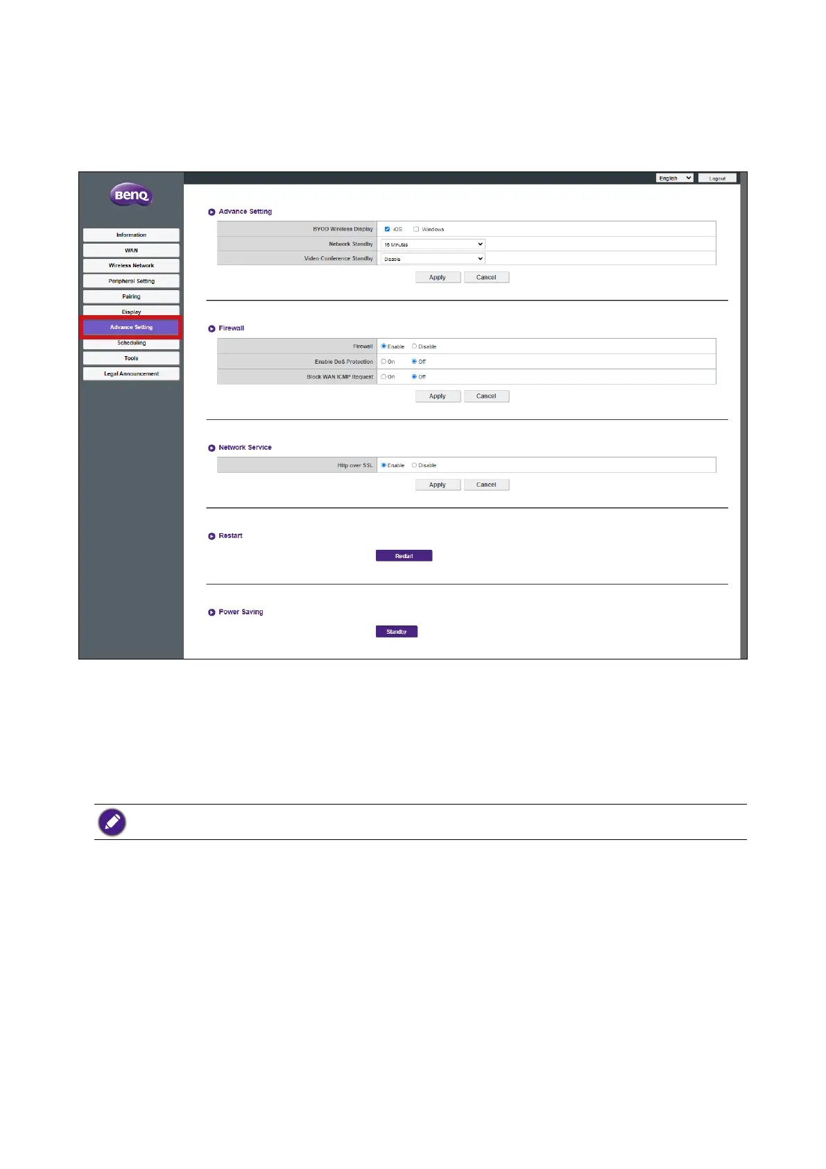 Click Advance Setting and you will see the Advance Setting, Firewall, Network Service,