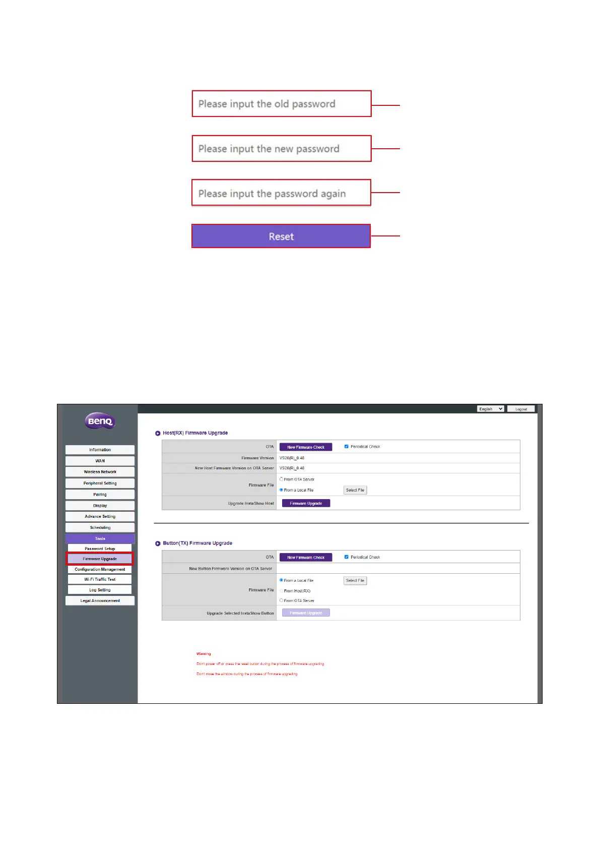 for both the Host (via the Host(RX) Firmware Upgrade sub-menu) and Button (via the