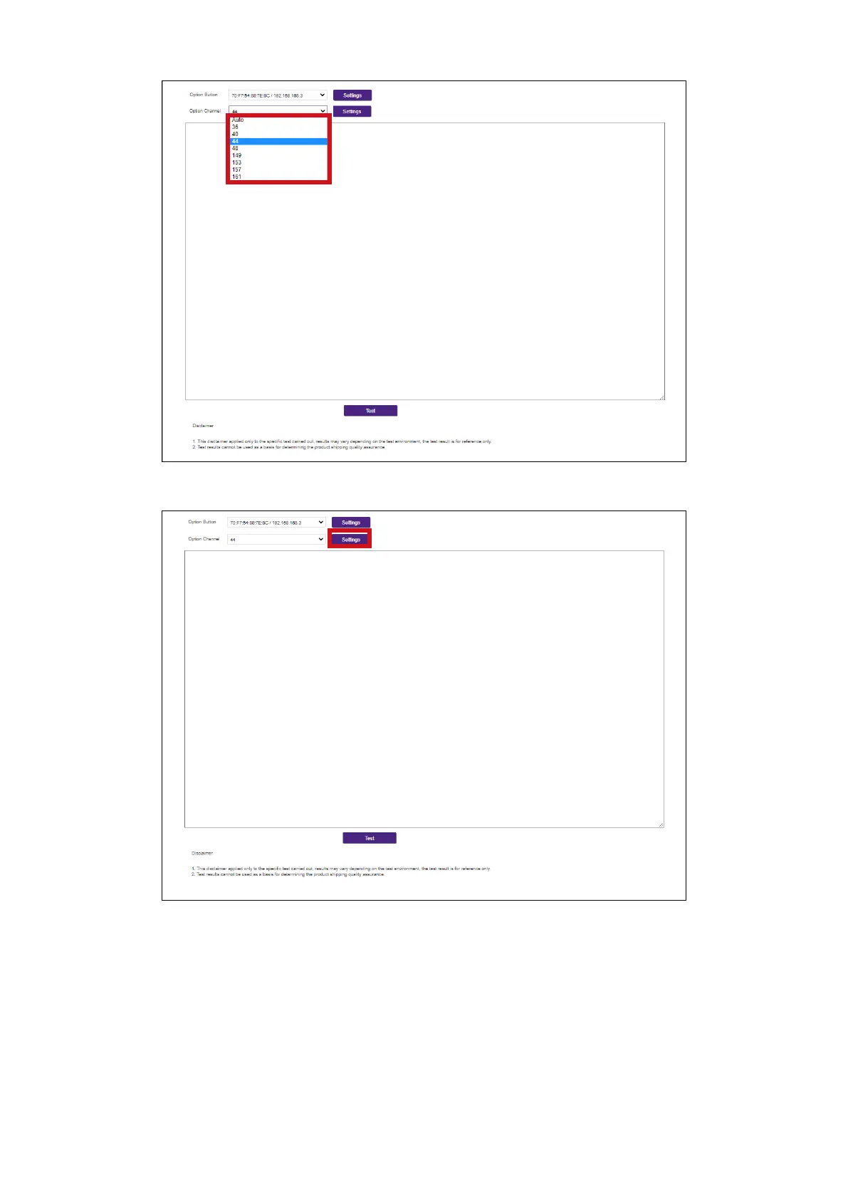 4. Click the Settings button to set the channel test.