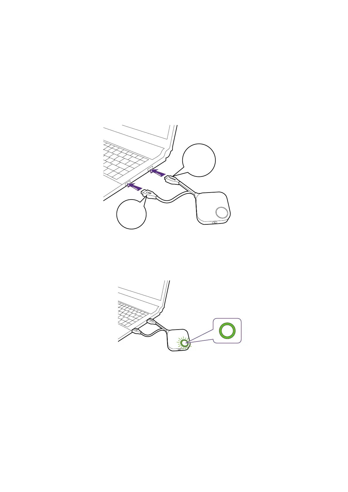 1. Connect the Button’s HDMI and USB jacks to the corresponding inputs of a laptop. See the illus-