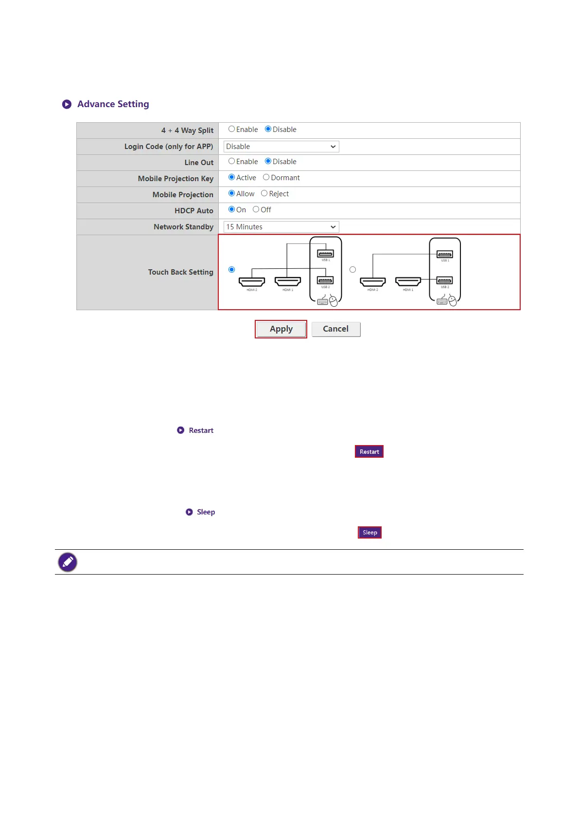 After you congure all the Advance Setting items, press Apply to proceed.