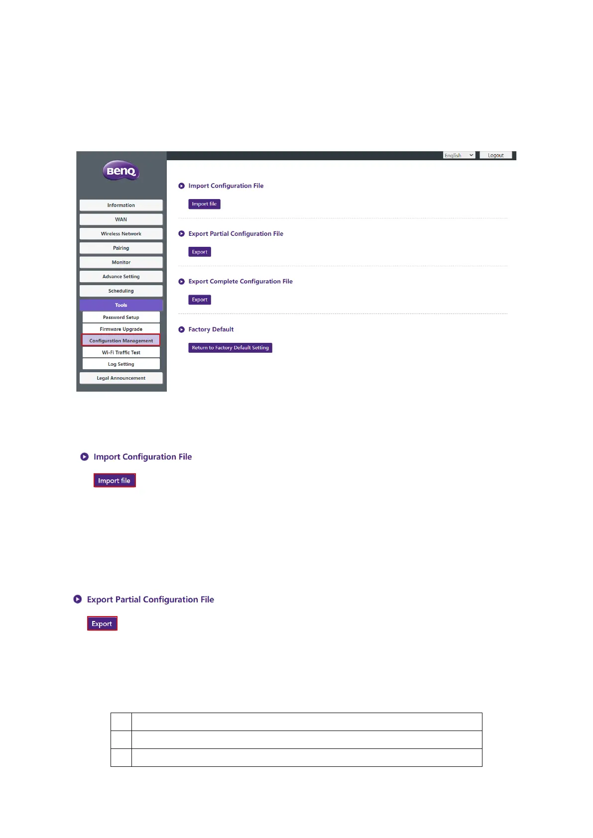 You can export a partial conguration backup in the Export Partial Conguration File sub-