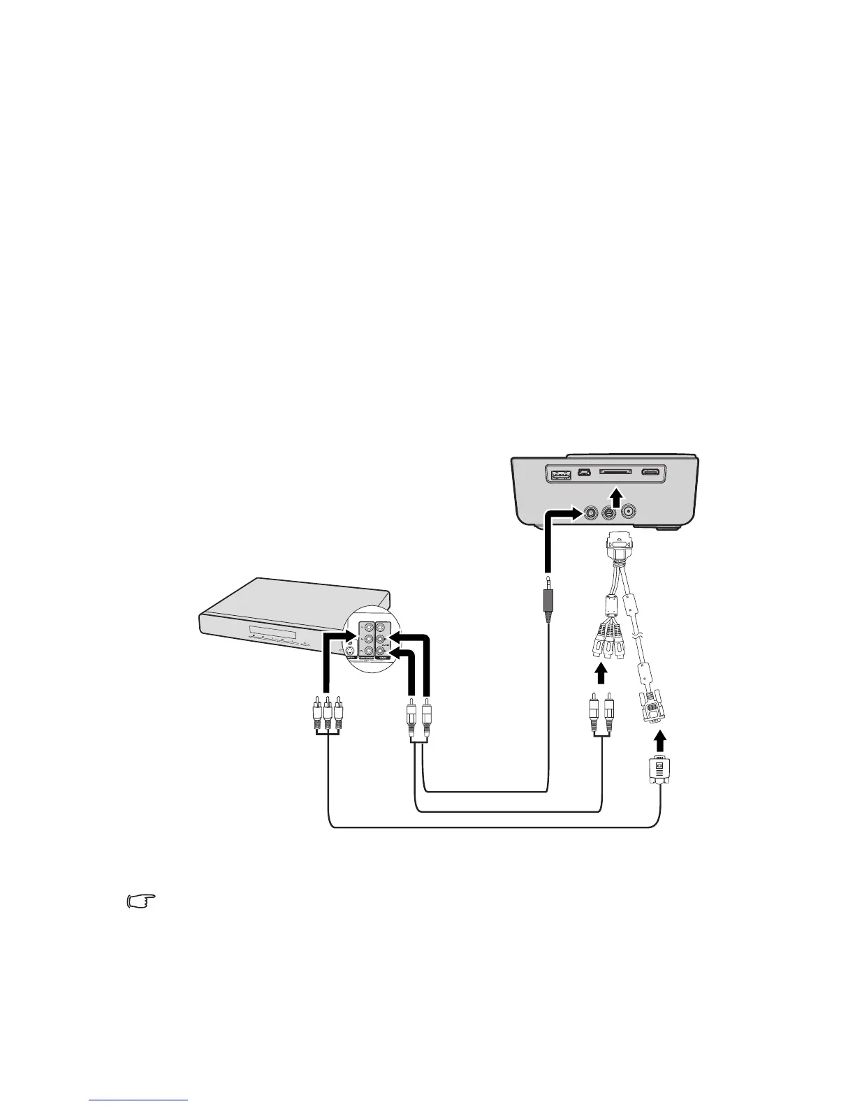 4. If you wish to make use of the projector speaker, take a suitable audio cable and
