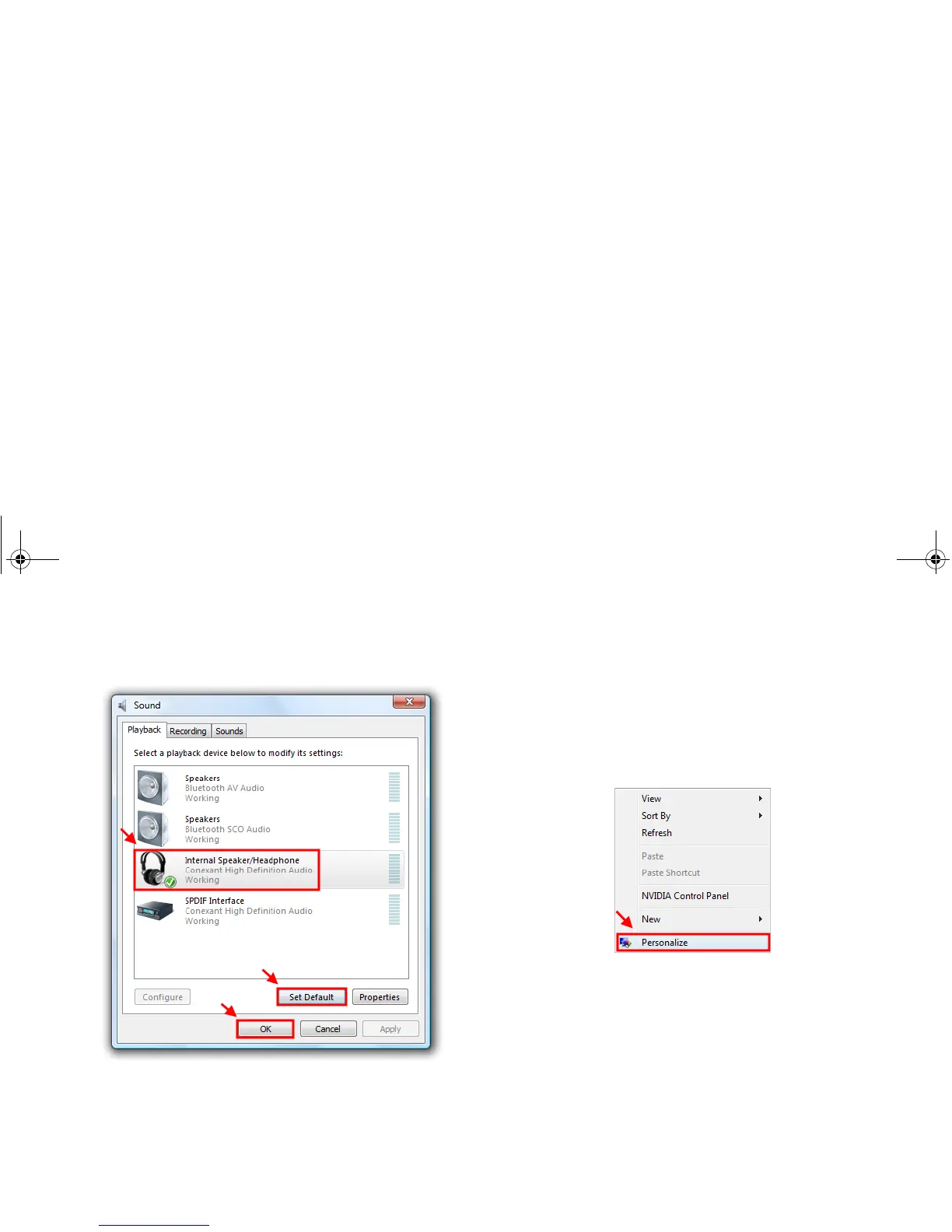 Speaker/Headphone, and then click Set Default and OK.