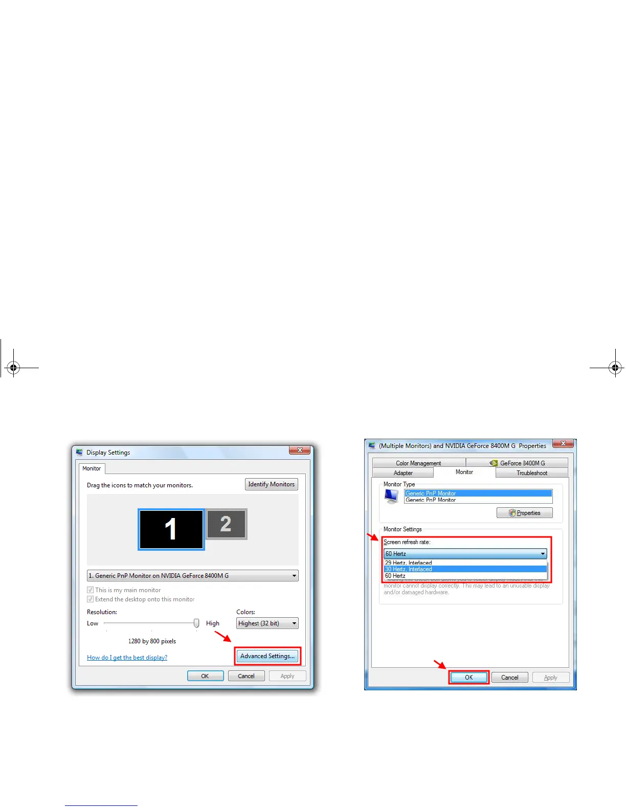 refresh rate, and then click