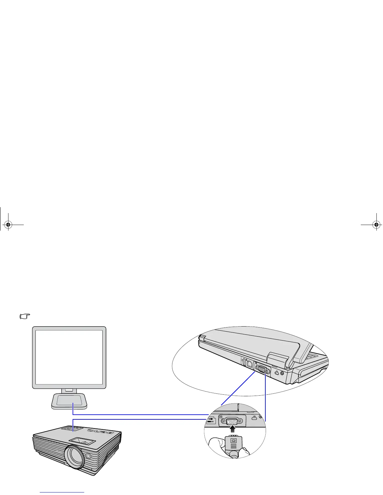 You can output your Joybook's video signal to an external display device, such as a projector or monitor. Once the VGA cable is