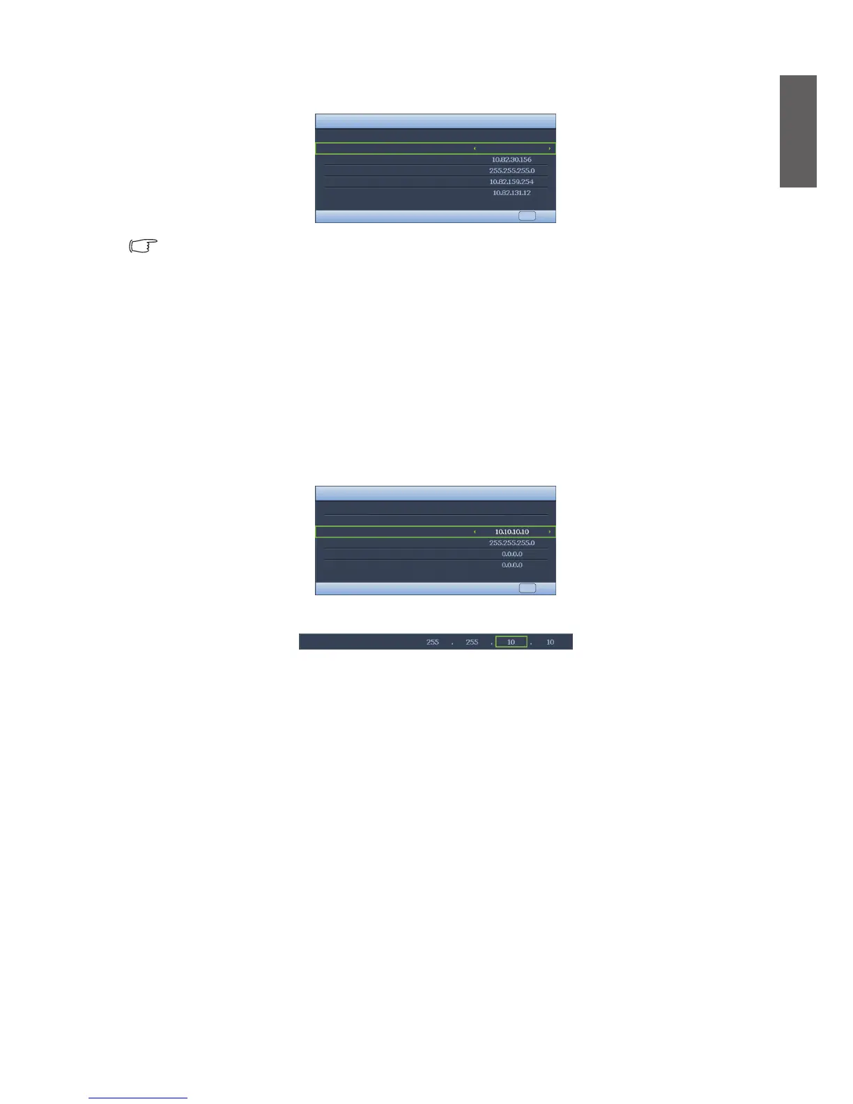 2. Highlight DHCP and press ◄/► to select Off.
