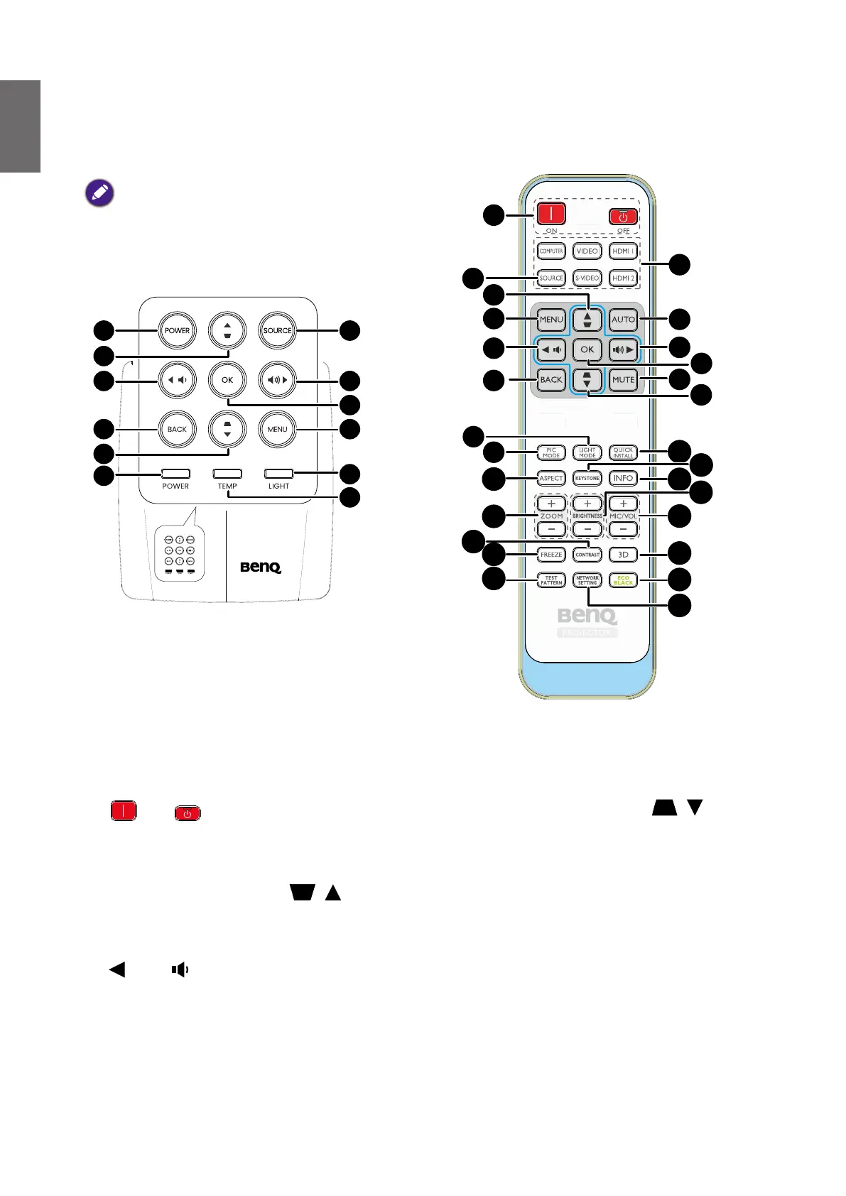 • The remote control is without laser pointer in