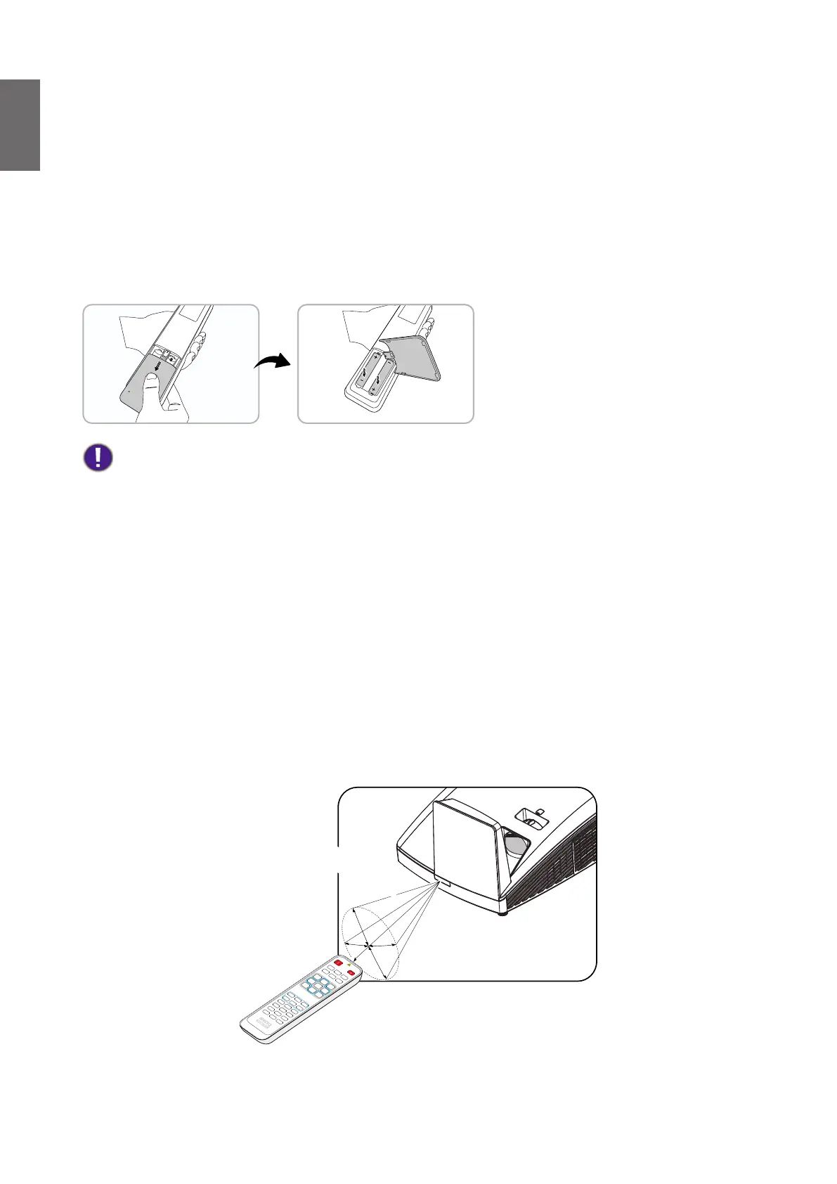 • If the battery is dead or if you will not be using the remote control for a long time, remove the battery to