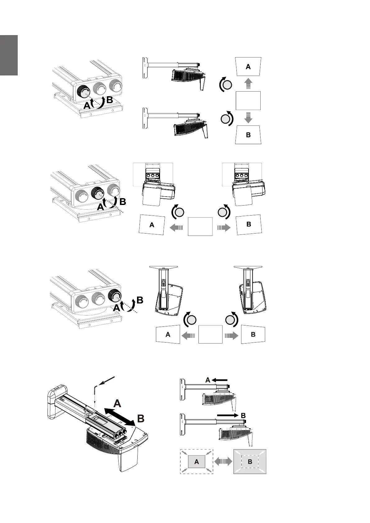 2. Adjust the Vertical Tilt/Horizontal Roll/Horizontal Rotation to adjust screen alignment and