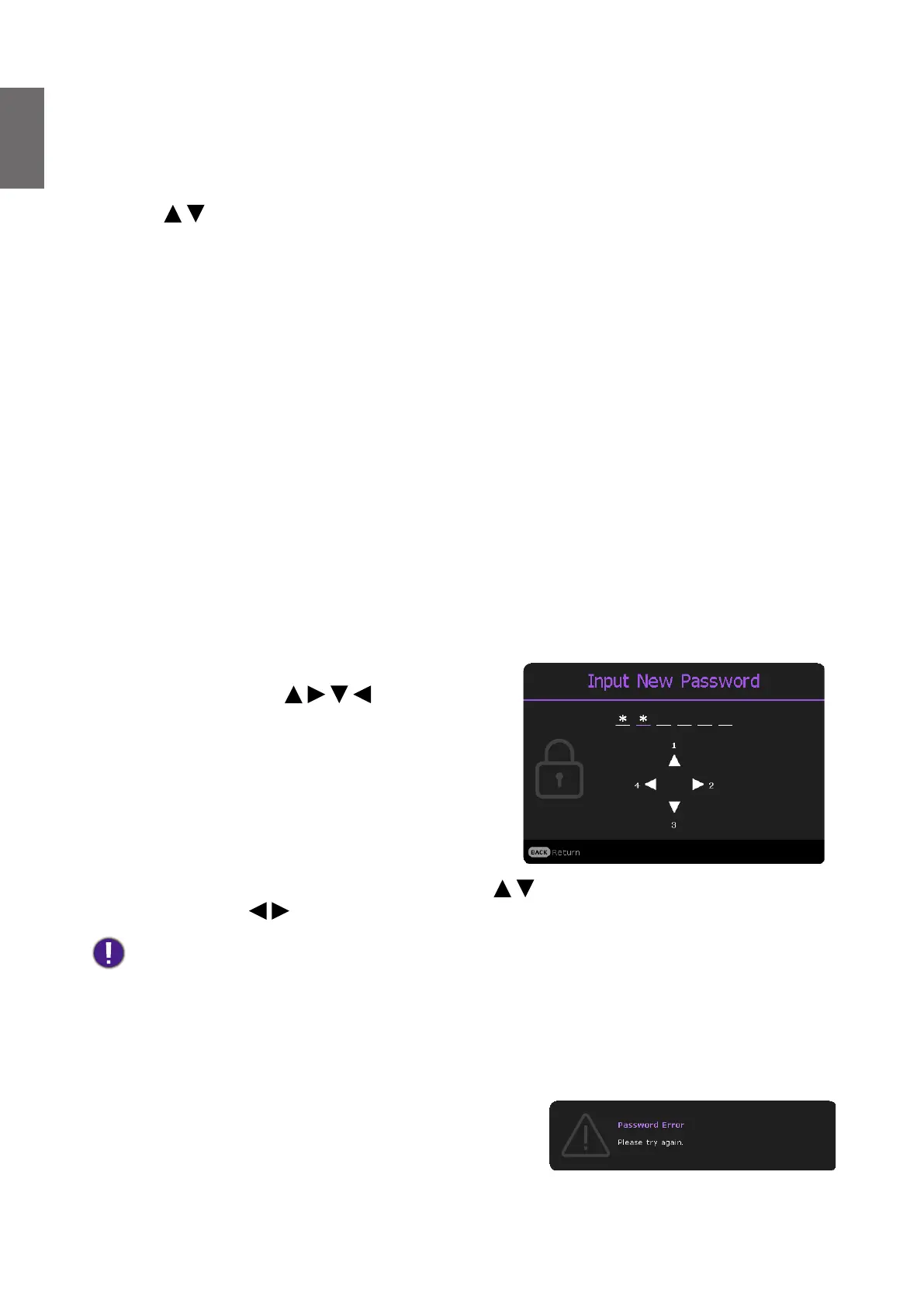 password you desire to set, press the arrow keys