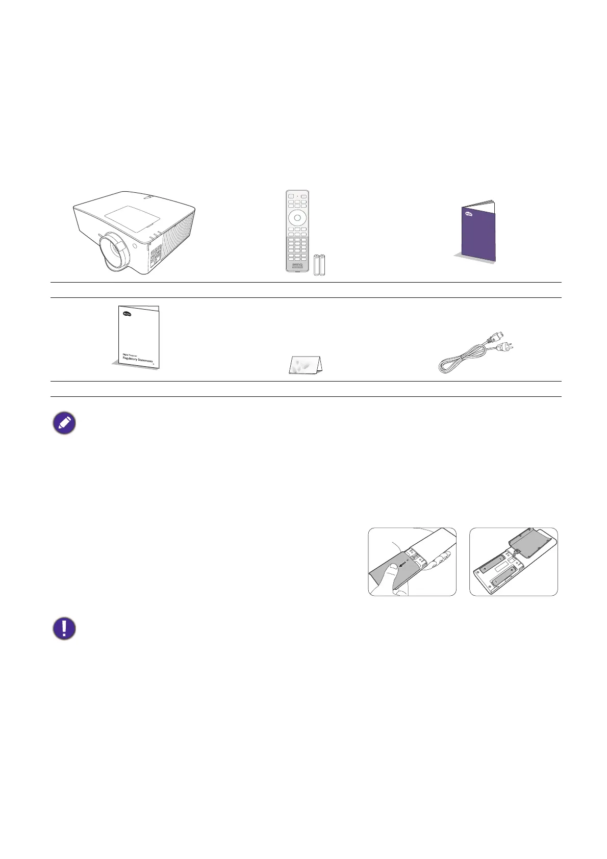 Regulatory statements Warranty card* Power cord