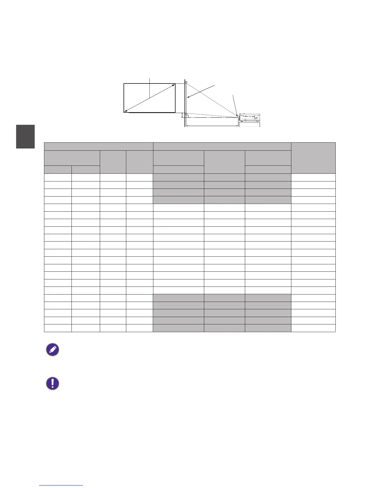 Wenn Sie den Projektor dauerhaft montieren möchten, empfiehlt BenQ, vor dem Anbringen Projektionsgröße und