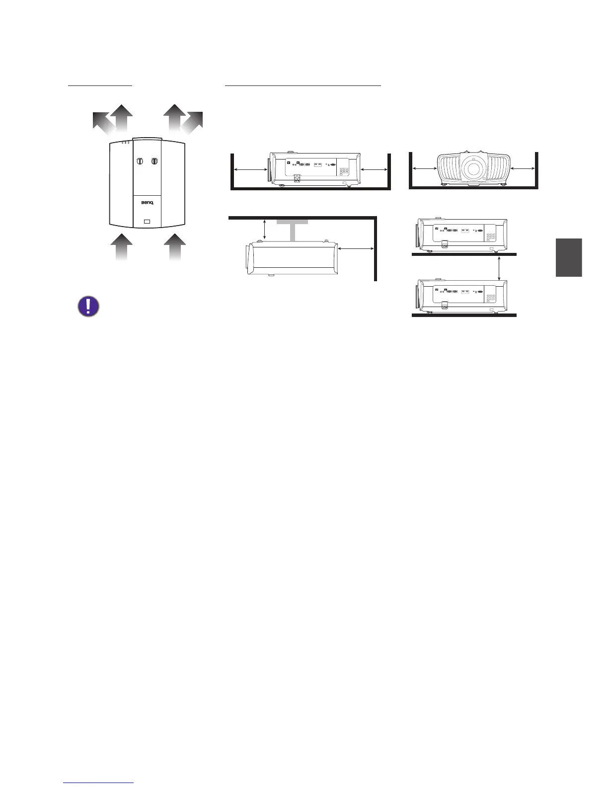 Per una corretta ventilazione del proiettore, assicurarsi di lasciare