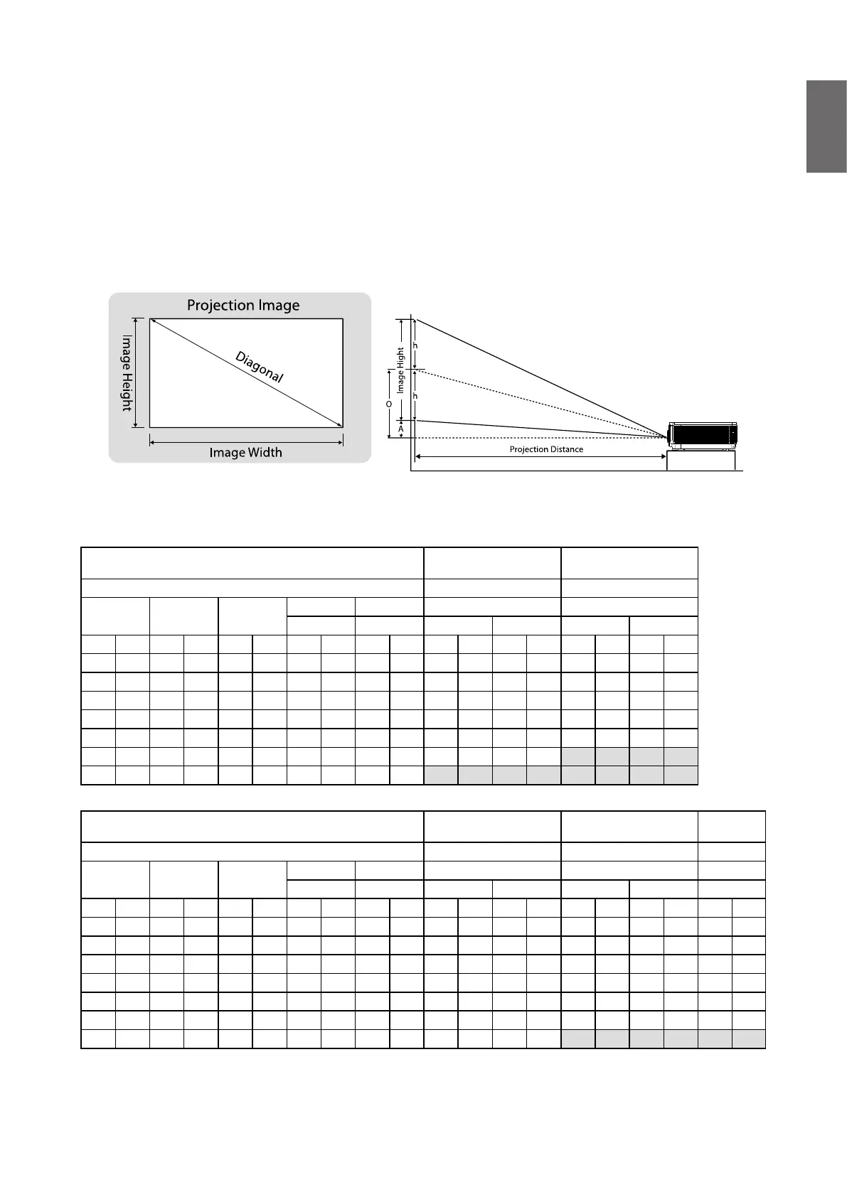 The distance from the projector lens to the screen, the zoom setting (if available), and the