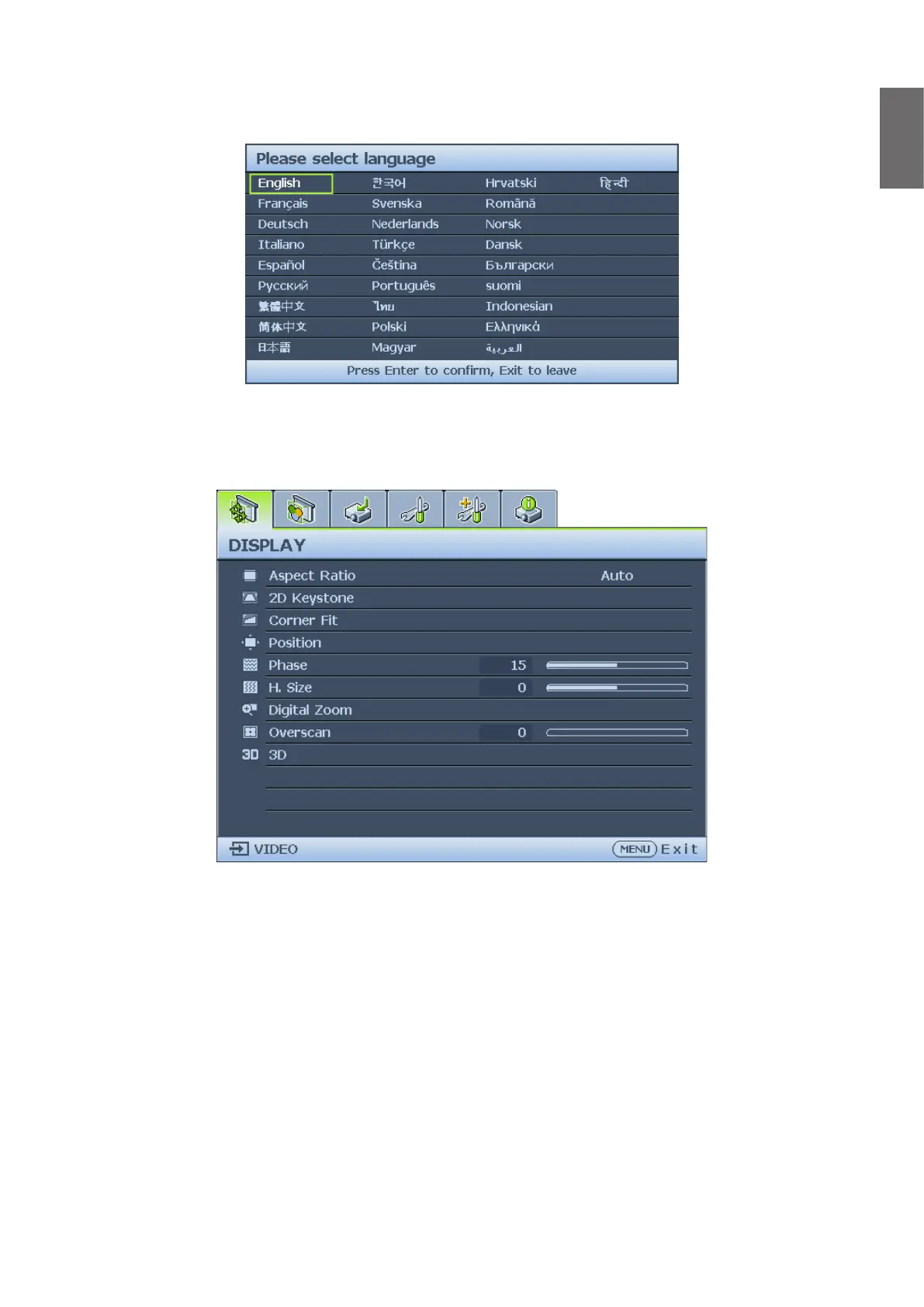1. Press ENTER on the projector or remote control to turn the OSD menu on.