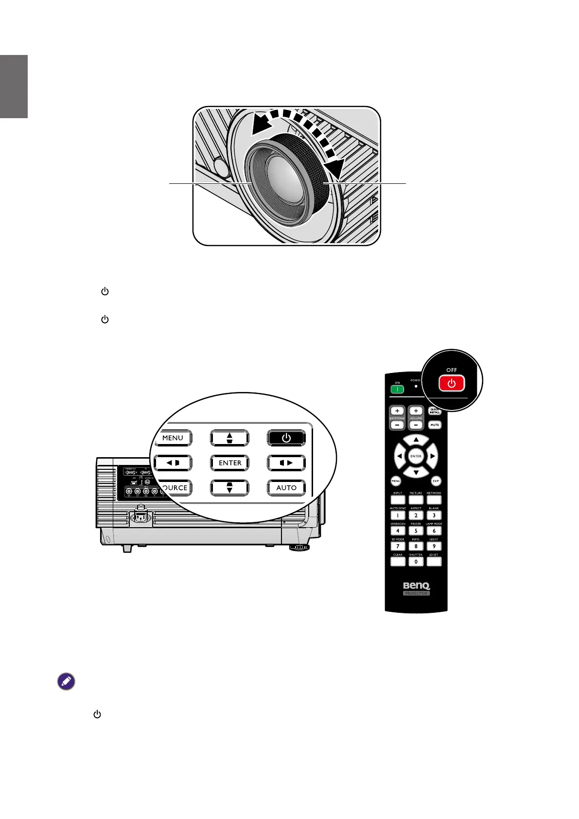 1. Adjust the projected image to the size that you need using the ZOOM ring.