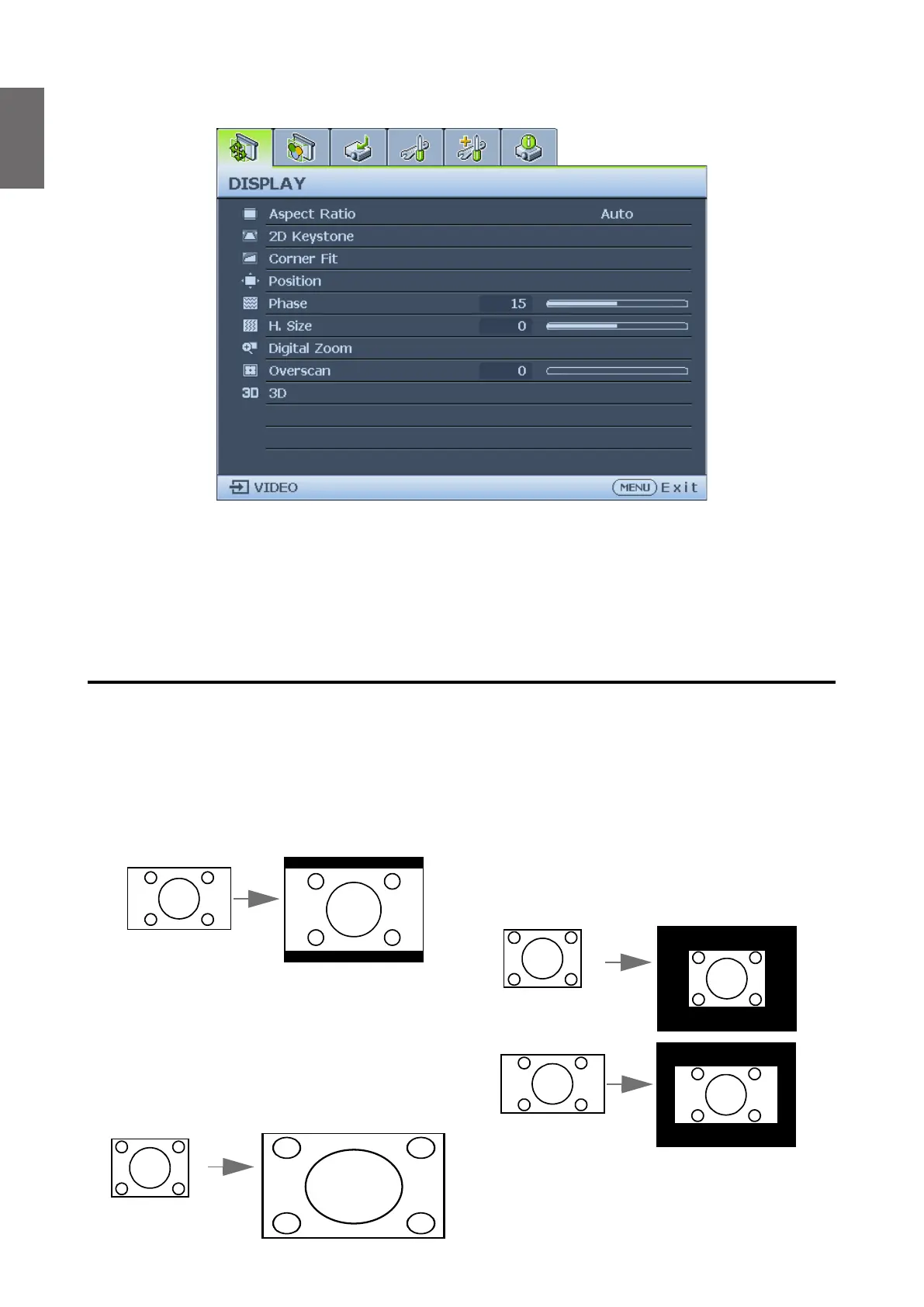 1. Press ASPECT to show the current setting.