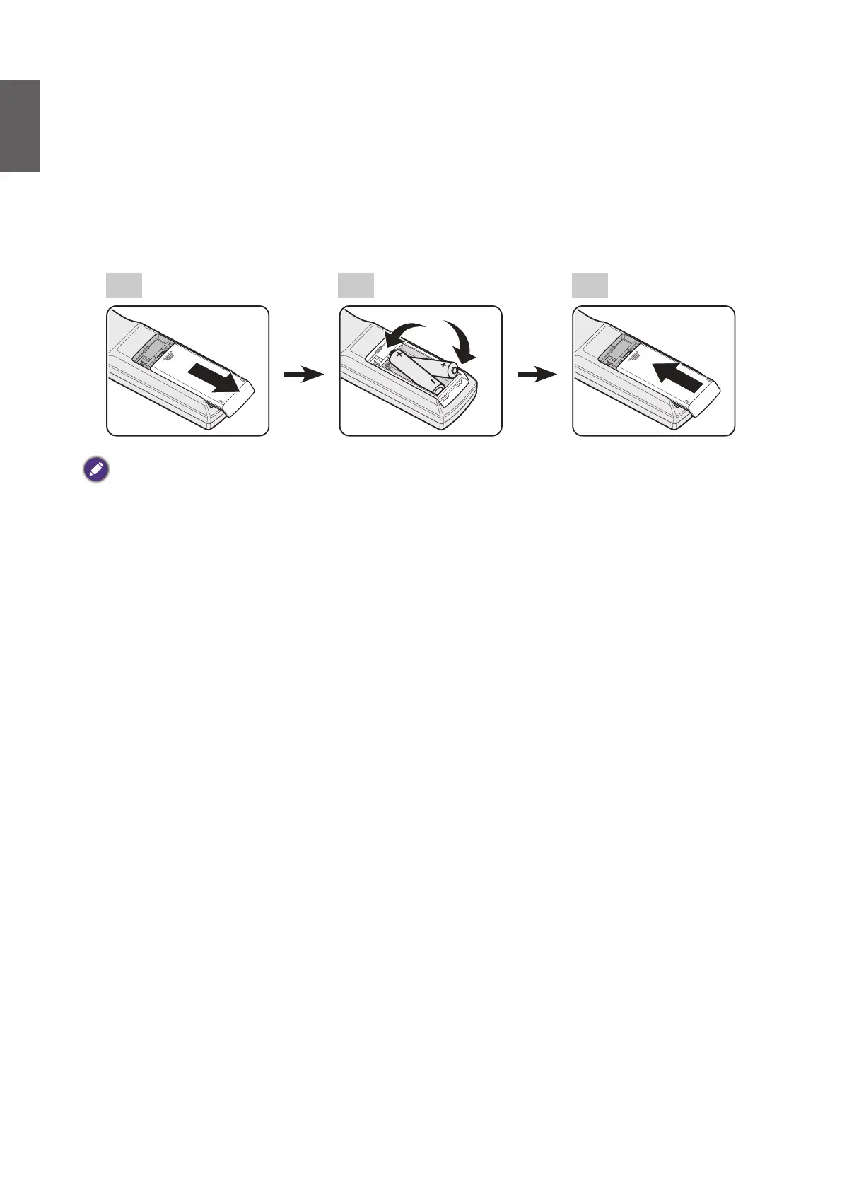 1. To open the battery cover, turn the remote control over to view its back, push on the nger