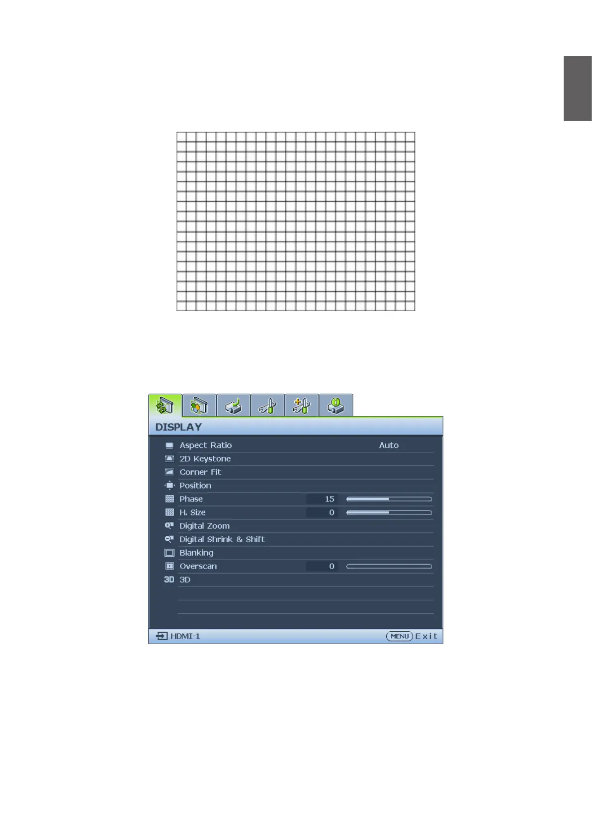 The projector is capable of displaying the grid test pattern. It can be used to assist you with the