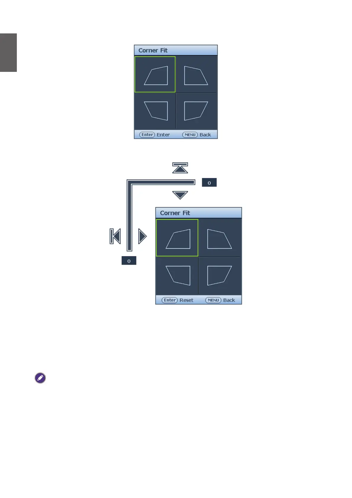 to select one of the four corners and press ENTER.