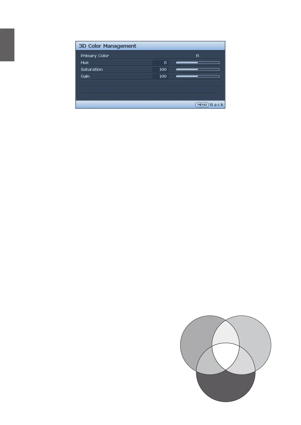 2. Press ENTER and the 3D Color Management page