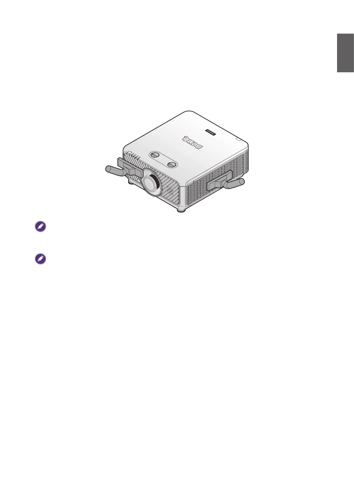 Using a ladder is recommended to access the lter. Do not remove the projector from the wall mount.