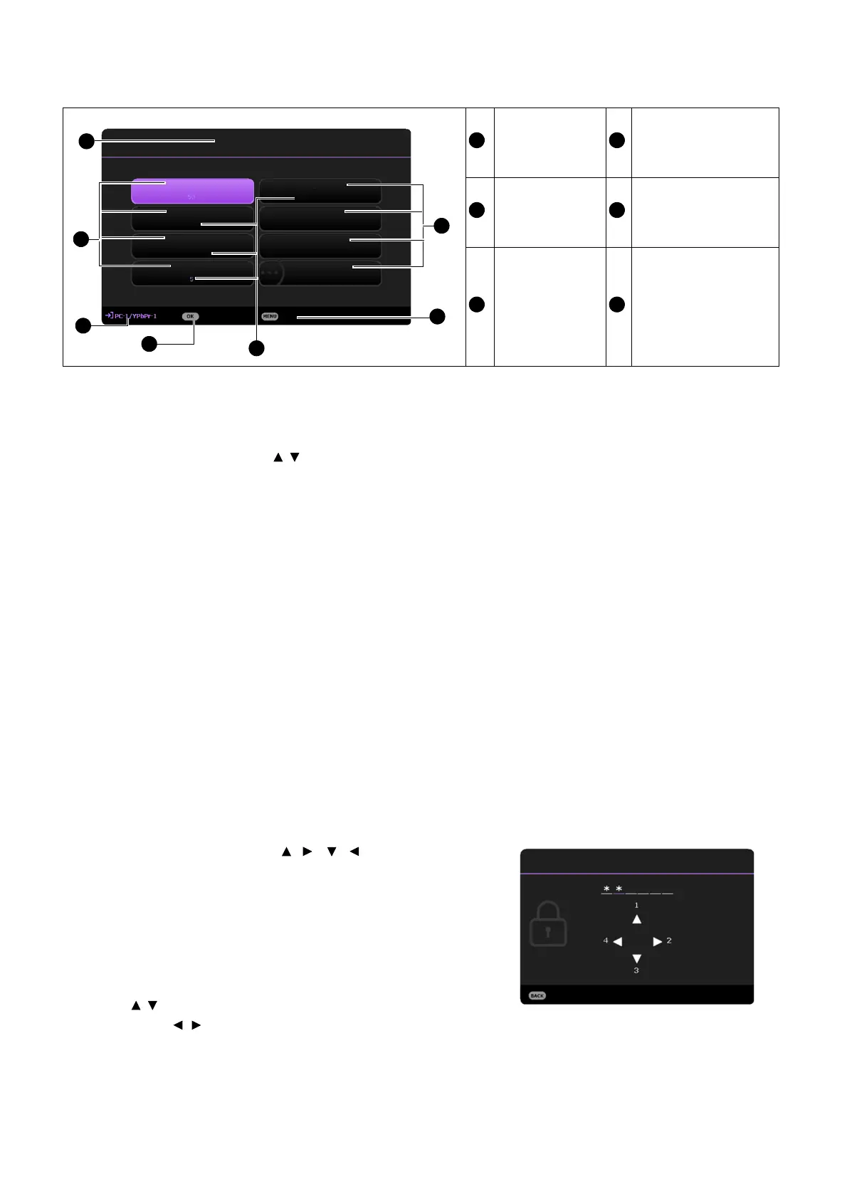 password you desire to set, press the arrow keys